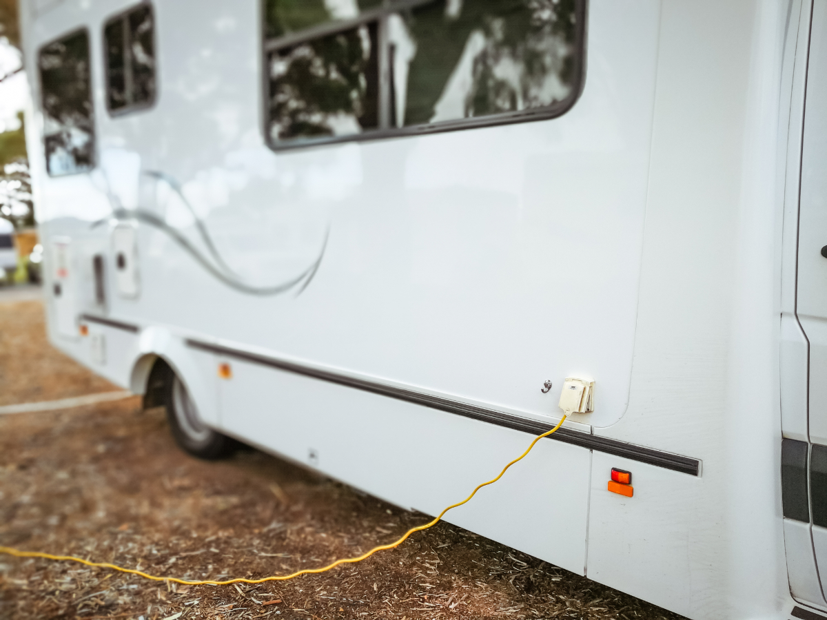 Twój kamper powinien być wyposażony w gniazdo wejściowe CEE 16A i odpowiedni przewód przyłączeniowy.